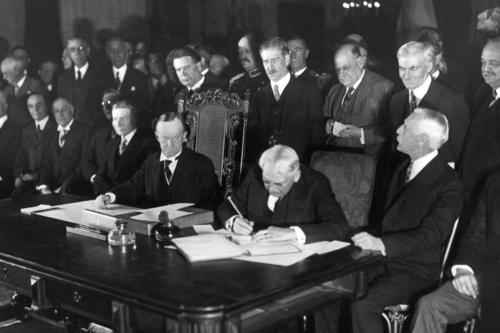 这一协定,我们可以视作基本和约,因为我们签署这一协定,我们有一种感情,就是:我们和可怕的战争年代与展示多笼罩的精神分道扬镳了。