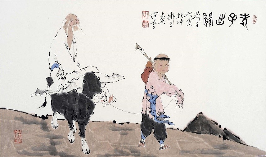 关于老子,《列仙传》中有紫气东来、骑牛出关的传说。说的是老子过函谷关,关尹见有紫气从东边飘来,知道将有圣人过关。果然,老子骑着青牛徐徐而来,关尹便留老子讲道,于是老子写下《道德经》飘然而去,不知所终。