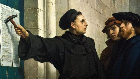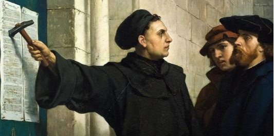 1517年10月31日,马丁·路德把他的辩论提纲(《九十五条论纲》)贴在了德国维滕堡城堡教堂的大门上,宗教改革运动开始。