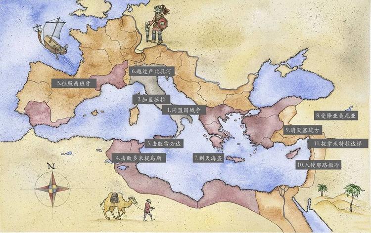 苏拉死后,他靠着镇压起义的功绩当上执政官,在罗马元老院的授权下展开对外扩张战争,其中他剿灭地中海海盗事件具有代表性的意义。