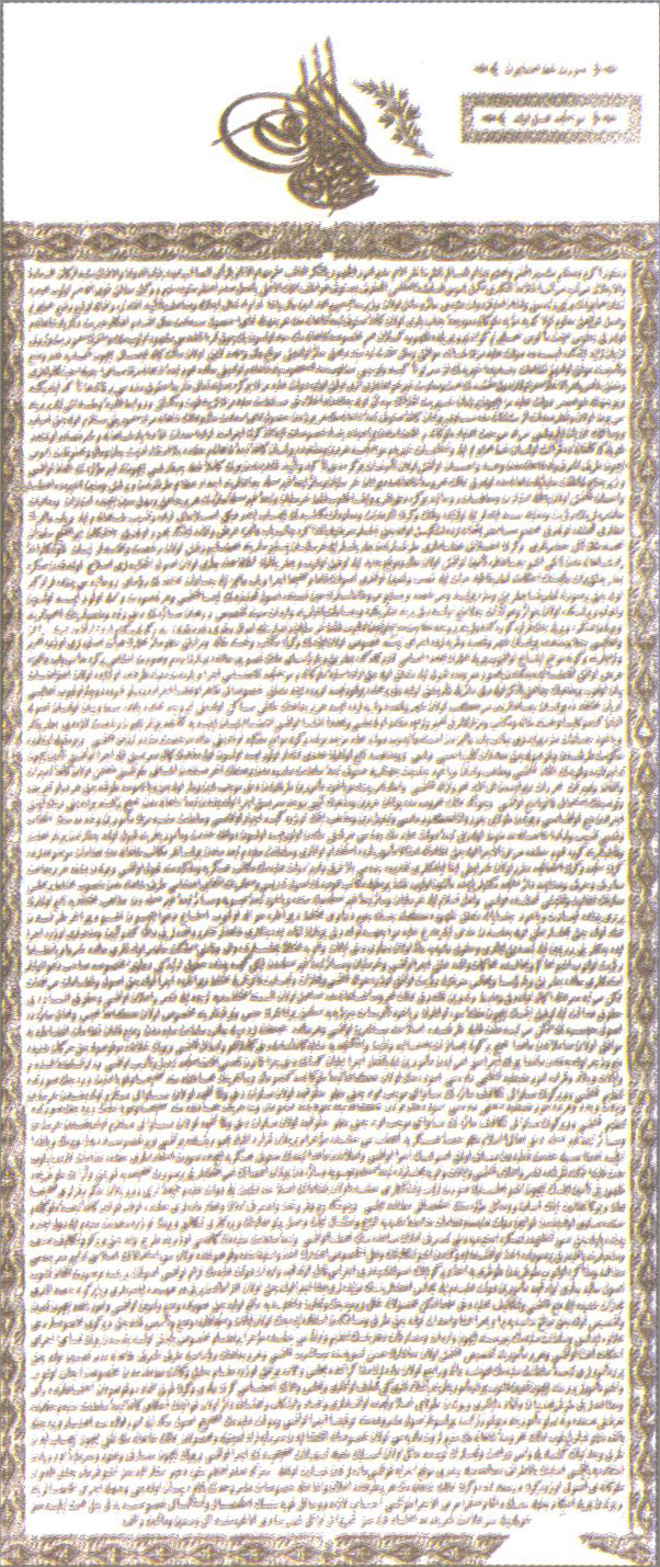 这份御诏与四个月之前的御诏相比,少了套话,多了很多具体内容。御诏开篇就说奥斯曼帝国如今的衰朽是因为没有遵守神圣的宗教律法,接下来又说,将一视同仁地对待穆斯林与非穆斯林,欢迎各国监督。因为诏书在皇宫花厅宣读,后世就将之称为《花厅御诏》。